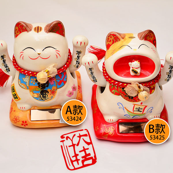 ◎精美陶瓷製招財設飾 ◎福氣滿滿討吉利,居家送禮兩相宜 ◎太陽能電能自給自足,招手超可愛