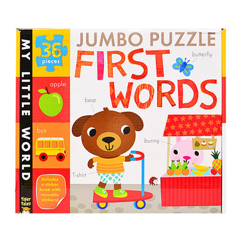 商品內容包括一個36片地板拼圖以及一本可重複黏貼的趣味貼紙書。