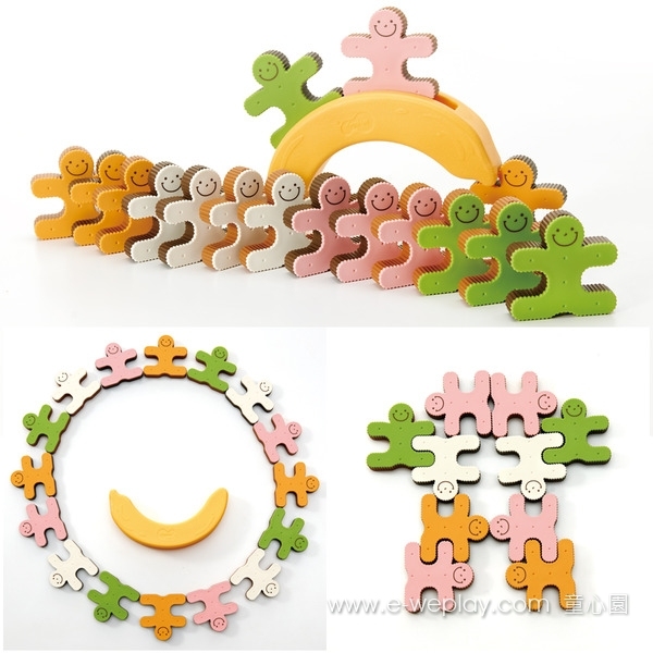 4. 餅乾人外型邊緣齒輪狀的設計,方便孩子堆疊卡合,也增加觸覺感官刺激。