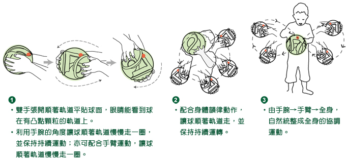 2. 讓雙手握球運轉,運用腕力控制球在軌道中持續滾動。