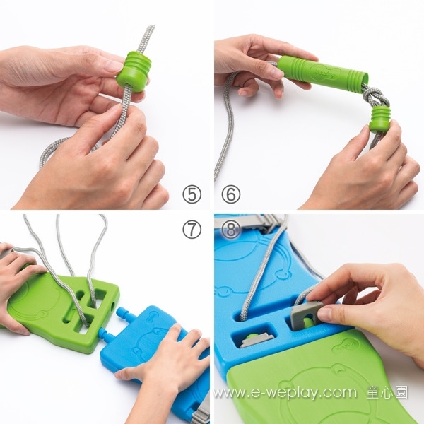 組件明細:板子8片、繩子8條、橡皮條8條、手把8個、連接片16個