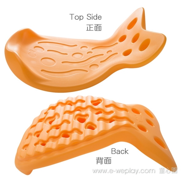 4. 平衡板底部波浪突起設計,讓幼兒在搖擺時,有著不同震動感受,也增添活動的挑戰性。