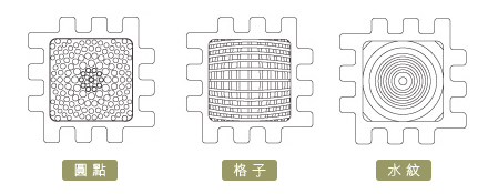 1. 圓點、水紋與格狀三種紋路設計,讓觸覺刺激有強弱之分。