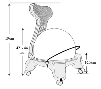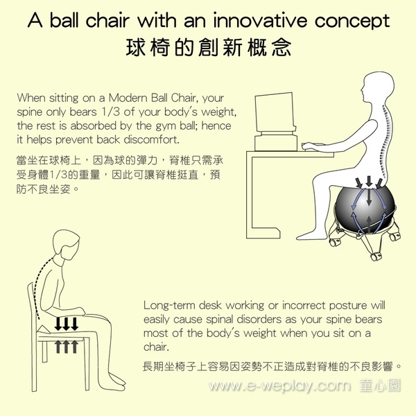 2. 座椅以球代替,堅固的鐵限於兩側固定,讓球不隨意移動。