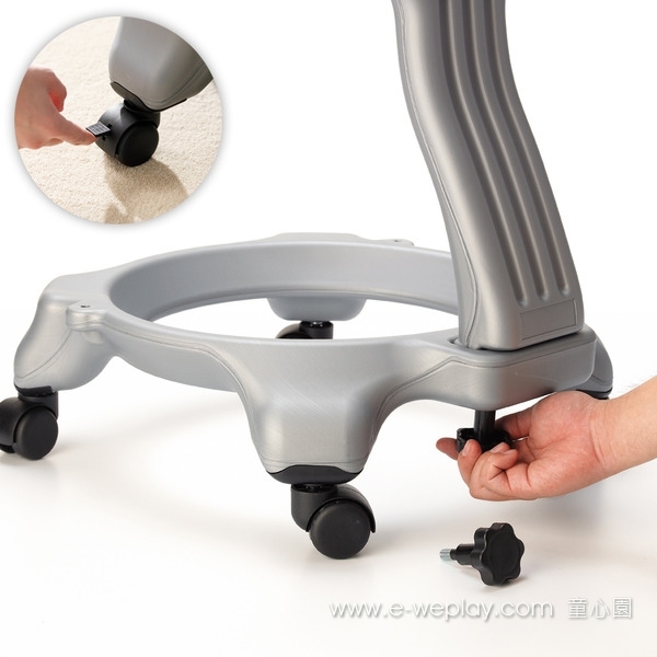 3. 椅底設有四個滑輪,推取方便且安全。輪子有煞車裝置,防止滑動。